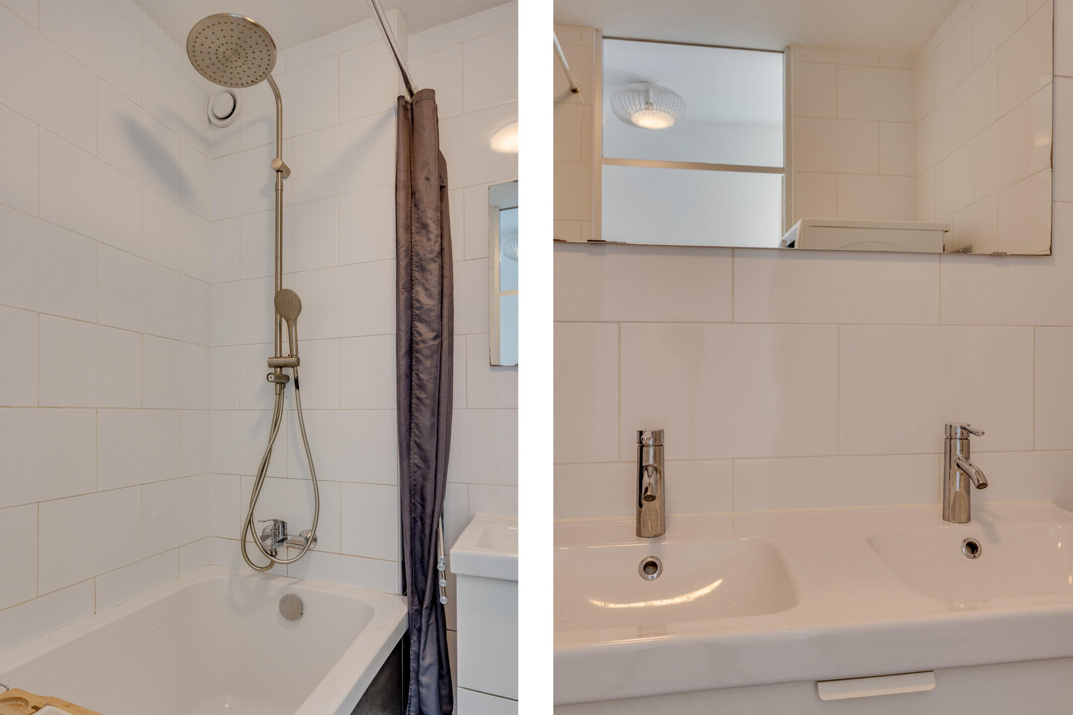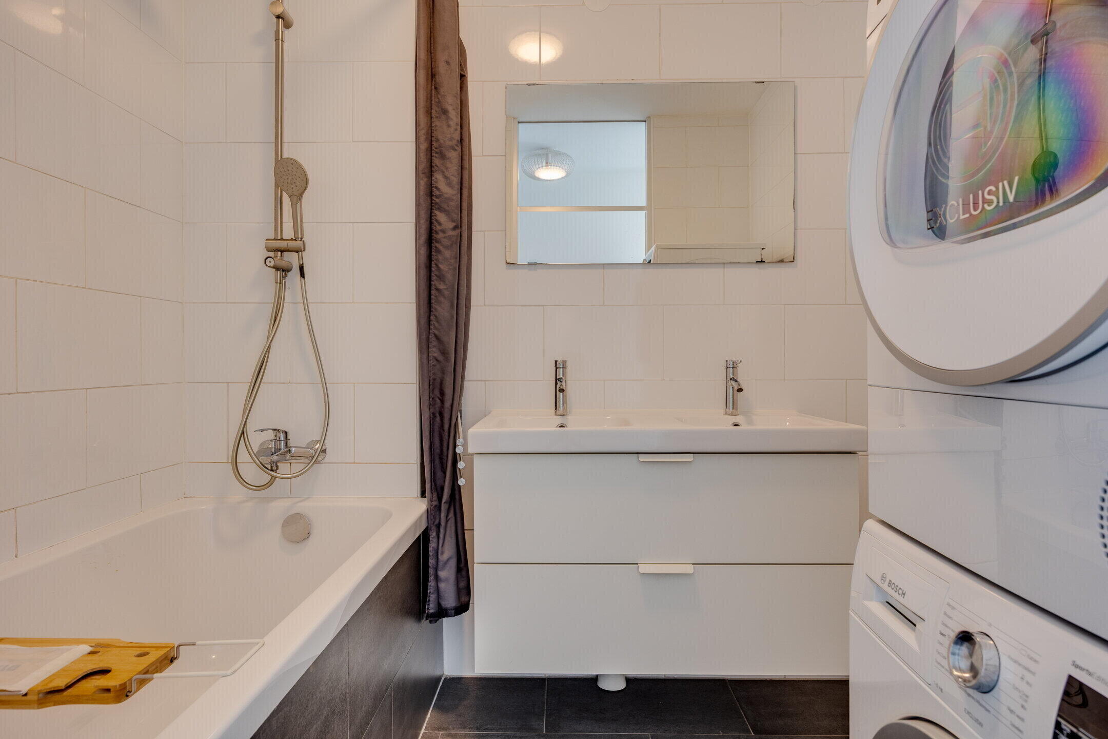 - Ligbad, dubbele wastafel, wastafelmeubel, wasmachineaansluiting