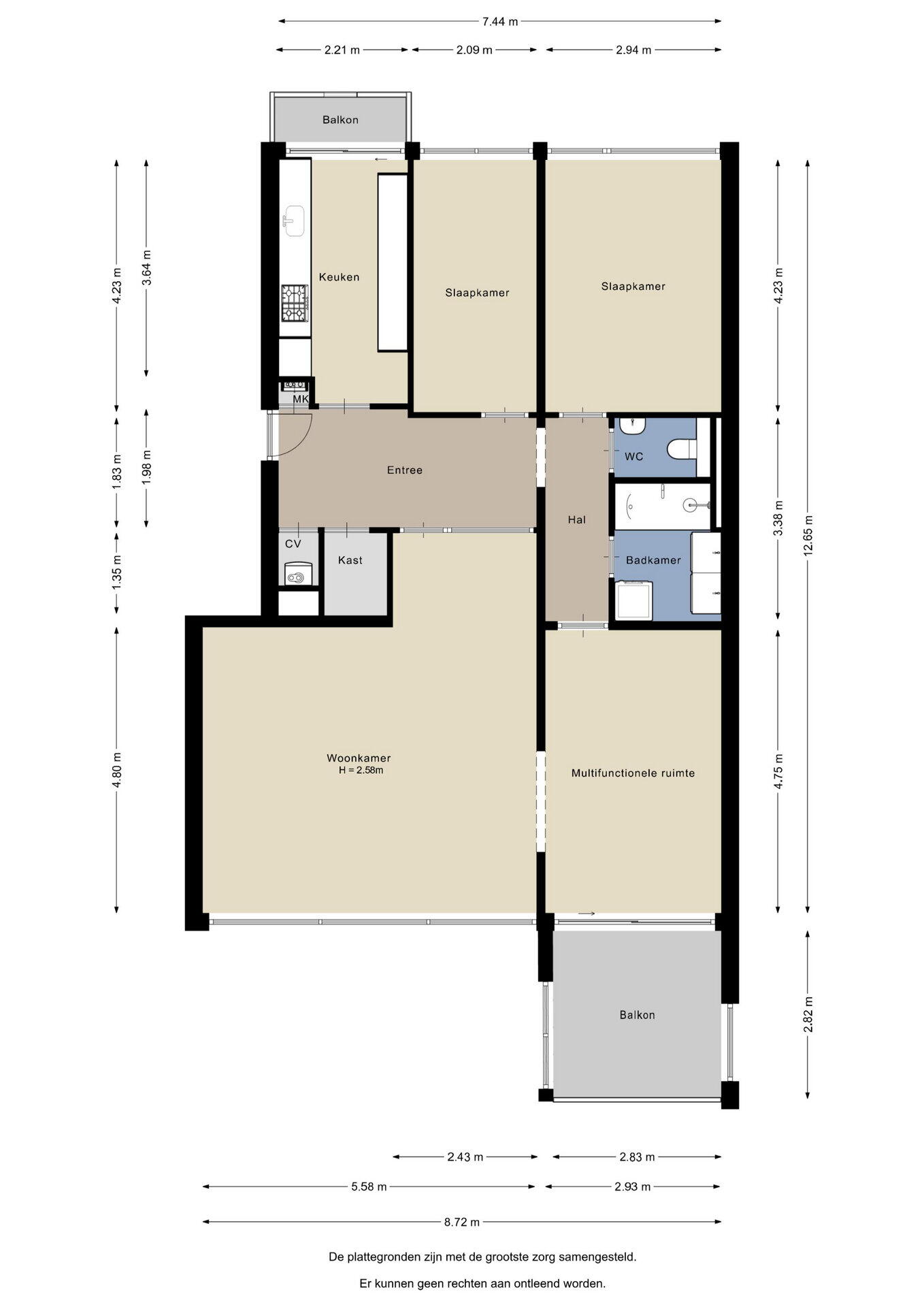 De ruime hal verdeelt het appartement slim: een lichte woonkamer met toegang naar multifunctionele zijkamer met toegang naar het balkon op het zuidwesten, een gesloten keuken met 2e balkon op het noordoosten. Uiteraard is de keuken voorzien van de gebruikelijke inbouwapparatuur. Verder biedt dit appartement nog twee slaapkamers, een badkamer met ligbad incl. douchehoek en dubbele wastafel, een apart toilet en een berging. Beide ook bereikbaar vanuit de hal. Kenmerkend aan de appartementen aan de Verdiweg zijn de grote 'vierkante' ruimtes met grote raampartijen en lekker veel lichtinval. En 2 balkons dus: vanuit de keuken kun je 's ochtends lekker genieten van een kopje koffie of een glas thee. Na je werkdag geniet je lekker van de middag- en avondzon op het balkon aan de achterzijde. Beneden in het complex is ook nog een ruime eigen berging. De VvE is actief en gezond. De maandelijkse servicekosten bedragen € 377,50 dit is inclusief de bruto maandlast van circa € 186 voor de energiebespaarlening van de VvE. De kosten voor de verduurzamingslening zijn aftrekbaar net zoals de hypotheekrente.